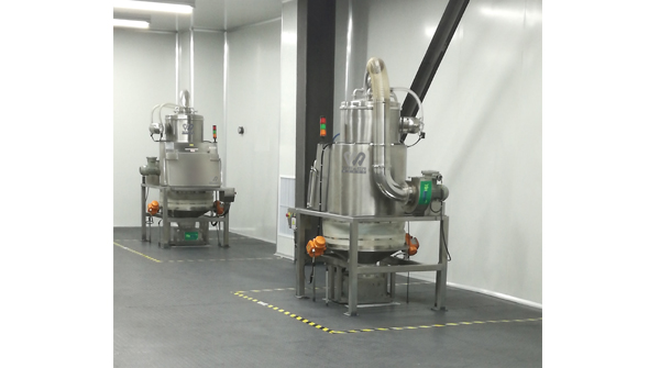 该系统适用于制药、食品、化工等行业中小袋物料的开包投料,针对流动性较差的物料,采用筛分、振动技术,有效帮助物料卸料,集尘系统的使用,使整个投料过程无粉尘泄漏。